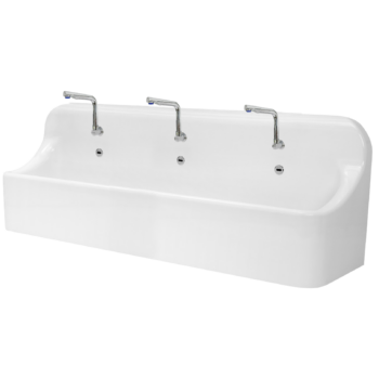 L’MP’TRIO Électronique est un lavabo de brossage chirurgical à trois postes, conçu pour garantir une hygiène absolue avant l'entrée en salle d'opération. Dotée d'un déclenchement par détection infrarouge sans contact, cette auge ergonomique élimine tout risque de contamination croisée, offrant aux chirurgiens et au personnel soignant une solution de lavage des mains sécurisée et confortable.